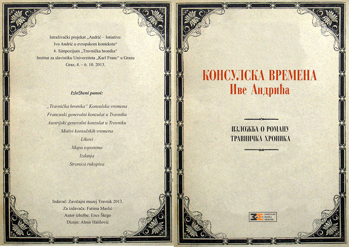 U programu Istraživačkog projekta „Andrić – Intiative: Ivo Andrić u evropskom kontekstu“, odnosno 6. Simpozijuma  „Travnička hronika“, u periodu na od 4. – 6. 10. 2013. godine Zavičajni muzej Travnik predstavio je izložbu Konsulska vremena Ive Andrića – Izložba o romanu Travnička hronika.