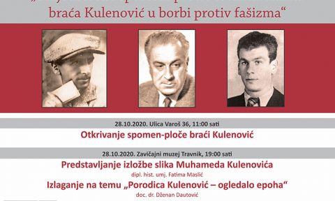 HOMMAGE BRAĆI KULENOVIĆ – MUHAMEDU, SKENDERU I MUZAFERU U travničkoj ulici Varoš, u neposrednoj blizini kuće u kojoj su svojevremeno živjeli, spomen-ploču posvećenu braći Kulenović otkrili su Fatima Maslić i doc.dr. Dženan Dautović, idejni i izvedbeni tvorci projekta o borcima protiv fašizma, umjetnicima i sportistima. U prostorijama Zavičajnog muzeja Travnik otvorena je izložba likovnih radova